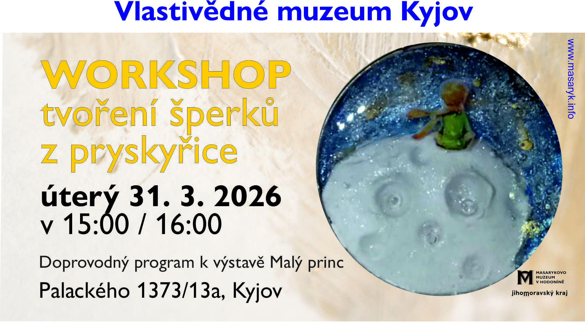Tvůrčí dílna pro děti i dospělé, během níž si účastníci vyrobí originální šperk z pryskyřice inspirovaný motivy planetek a symbolikou Malého prince.