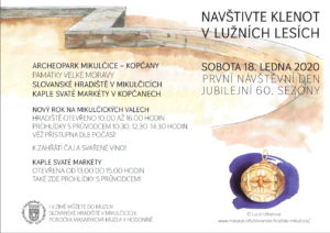 S přáním všeho dobrého v novém roce Vás srdečně zveme v sobotu 18. ledna na hradiště v Mikulčicích s nabídkou prvního návštěvního dne jubilejní 60. sezóny. V tento den bude otevřena i kaple sv. Markéty v Kopčanech.