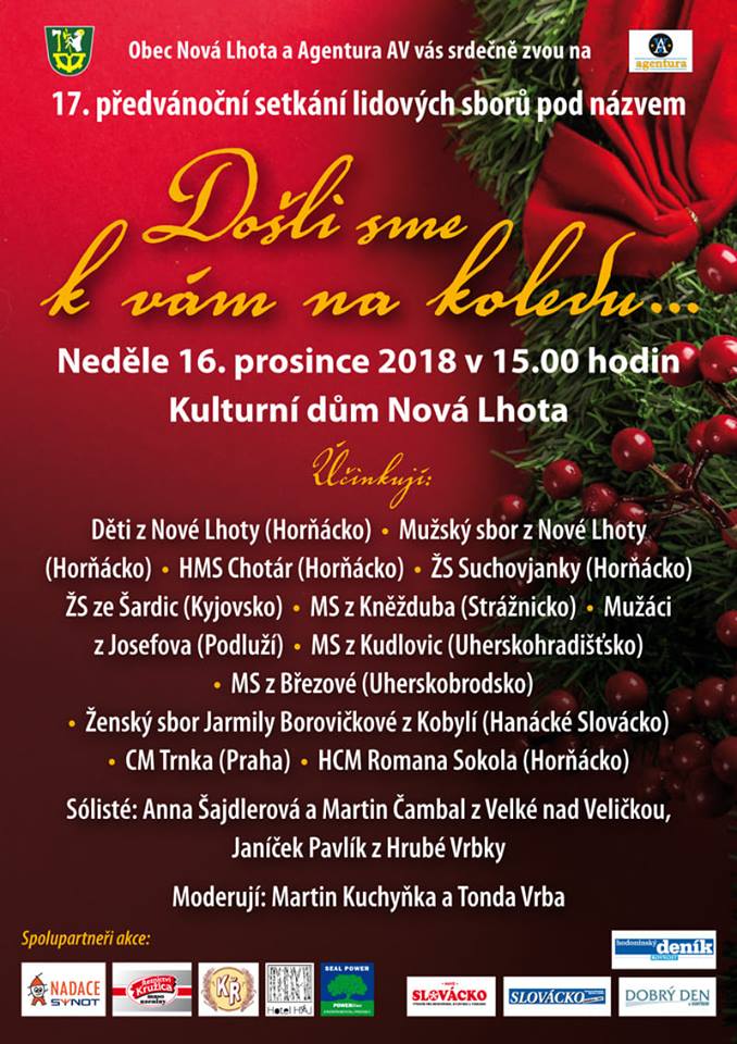 Neděle 16. prosince 2018 v 15.00 hodin kulturní dům Nová Lhota. Plakát:
